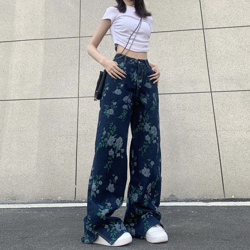 大胆な花柄が主役のこのデニムパンツは、女性らしい華やかさとカジュアルさを兼ね備えています。一見すると派手かもしれませんが、実際に履いてみると意外とどんなトップスとも相性抜群です。デートやお出かけにぴったりなアイテムです!